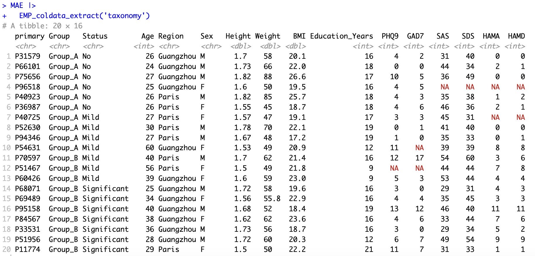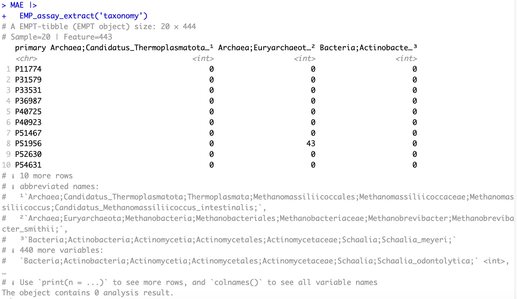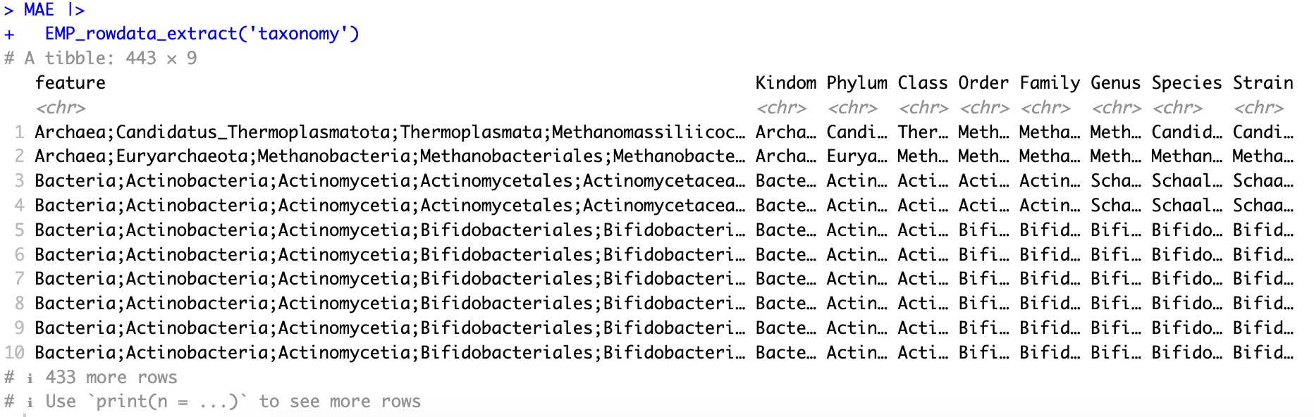 MAE |> EMP_coldata_extract(experiment='taxonomy',action='add',assay_name = 'counts') |>