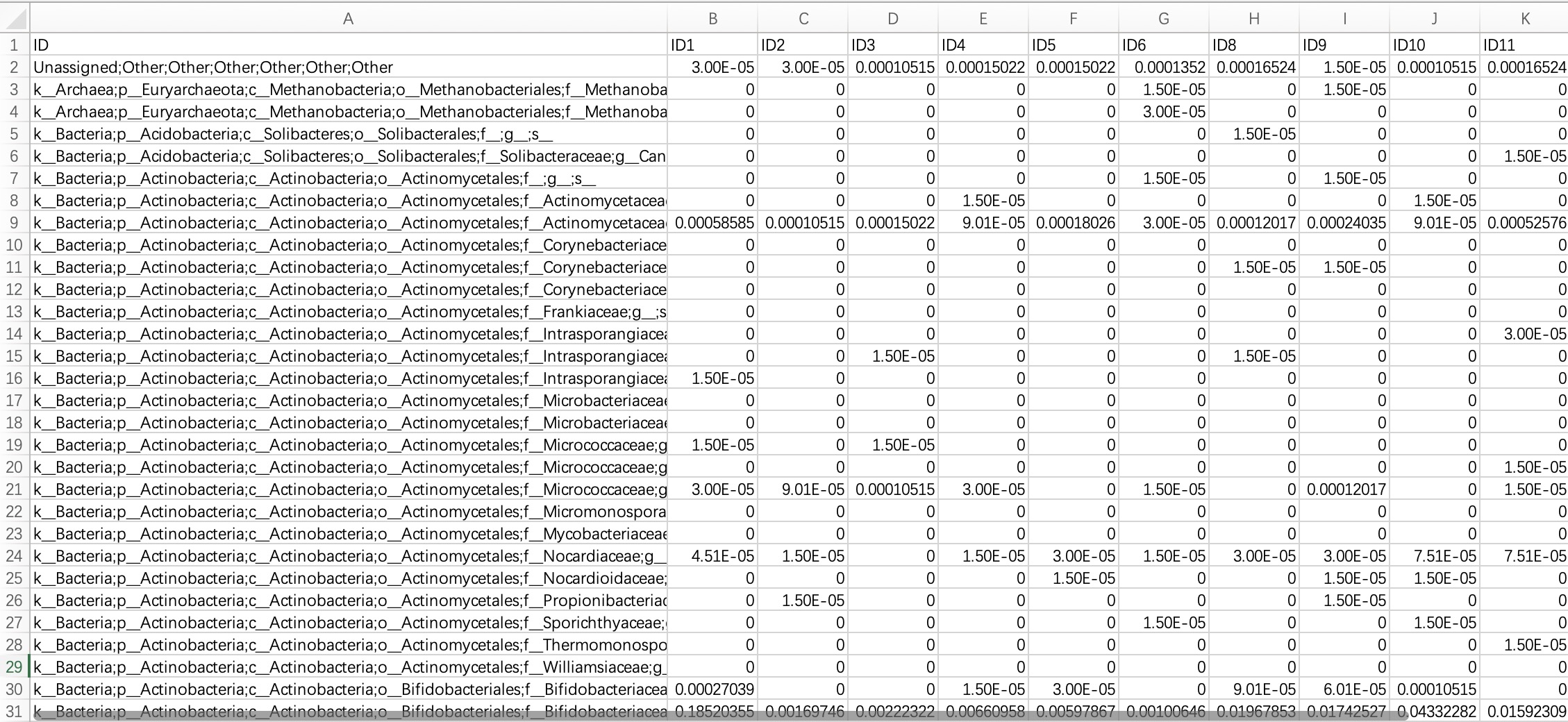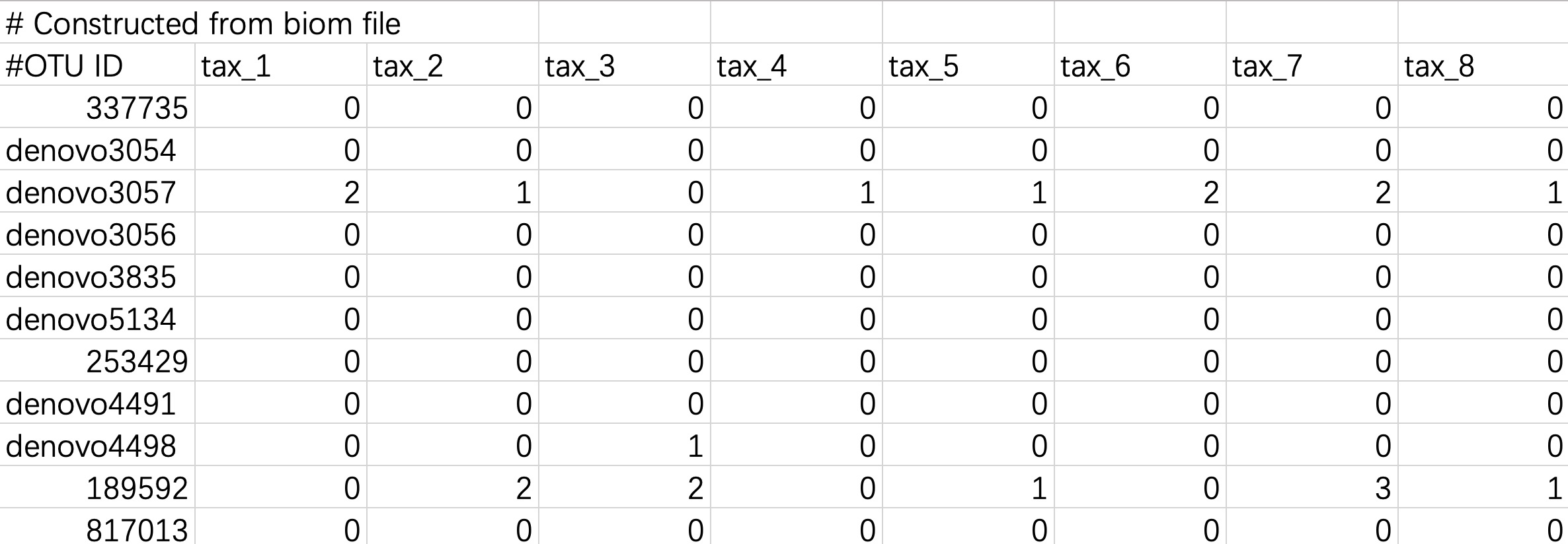 The species annotations of this annotation table have a hierarchical structure and usually contain all the result information at each level of the genus and species of the phylum family. The module EMP_taxonomy_import can automatically identify annotation information at the highest classification level and import the complete classification data.